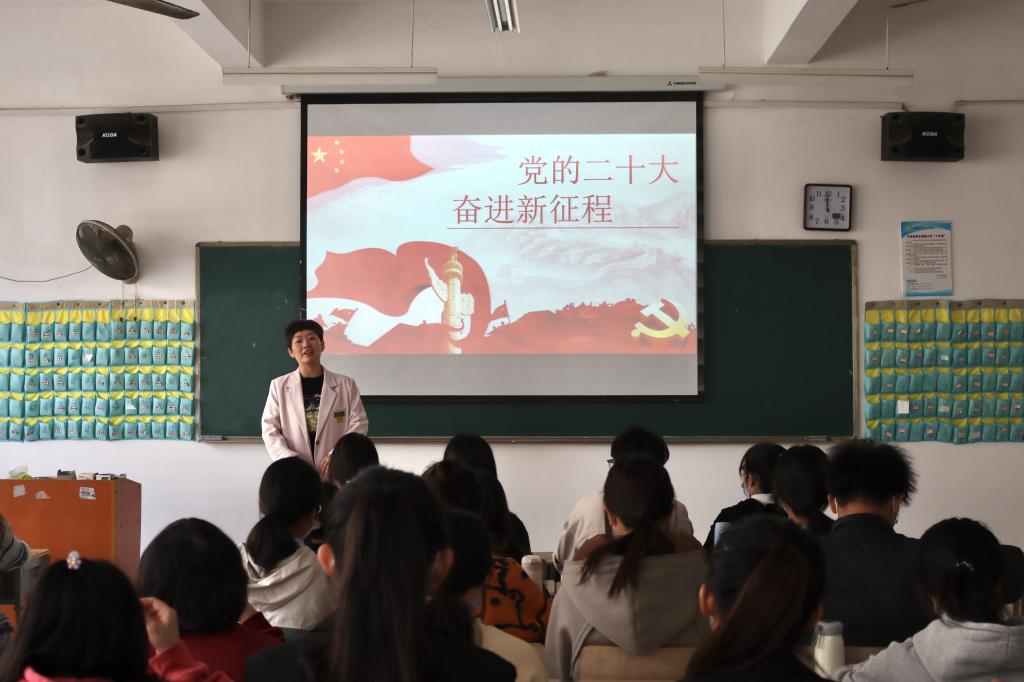 为深入学习宣传贯彻党的二十大精神,引导和帮助广大青年学生努力成为堪当民族复兴大任的时代新人,2022年11月24日jdb电子游戏官方网站党委副书记陈敏为入党积极分子讲授以“党的二十大,奋进新征程”为主题专题党课。她强调,学习好、宣传好、贯彻好党的二十大精神是当前的首要任务,按照习近平总书记“五个牢牢把握”重要要求,坚持全面准确,深入理解内涵,精准把握外延,切实用党的创新理论武装头脑。