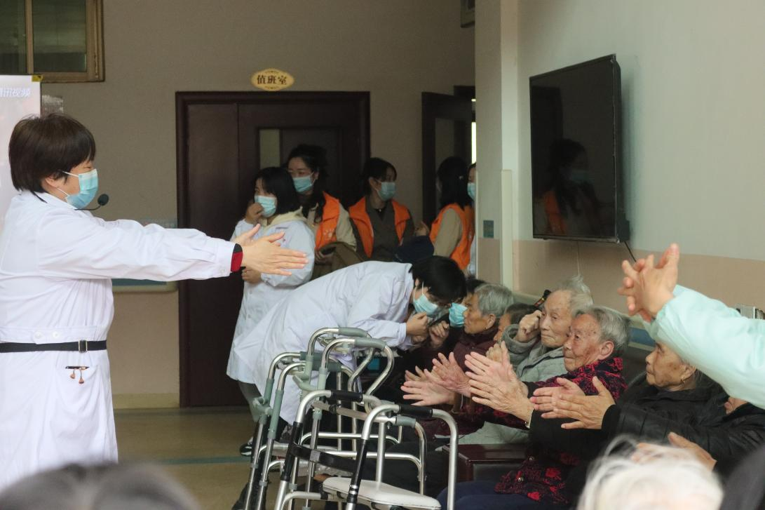 而我们的教师党员们也积极发挥自己医学专业优势,为老人们进行了别开生面的健康养生知识宣传与普及。社区教研室邓红、赖丹老师等更是带领现场几十位老人一起即兴做起了“健康手指操”,活动氛围一度高涨。