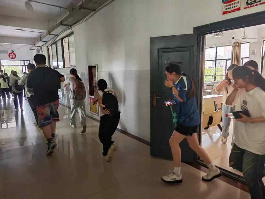 本次演练参与师生达 1600余人次,演练全程不设脚本、不提前彩排,真实还原突发事件的突发性与复杂性,确保演练贴近实际。在火灾逃生演练中,部分班级迅速启动应急预案,学生在教师引导下用湿毛巾捂口鼻、沿安全通道有序撤离,此次处置演练中,班干部与辅导员密切配合,及时安抚学生情绪、维护现场秩序,有效控制事态发展。