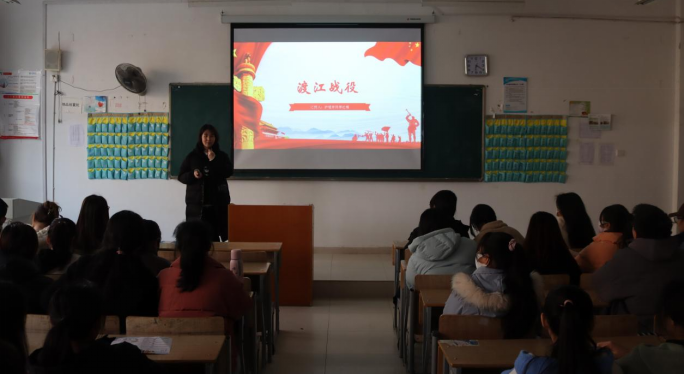 李红梅老师以“渡江战役——解放战争的胜利”为主题进行宣讲红色故事。宣讲主要分为三部分,包括渡江战役的战前局势、经过以及其胜利原因。李红梅老师以渡江战役的前奏——三大战役和毛泽东的《七律·人民解放军占领南京》导入,带领同学们深入了解渡江战役的历史,激起同学们的共鸣,让同学们逐步体会渡江战役的伟大力量,主要强调了中共中央的伟大战略决策、共和国将帅的卓越军事才能和中国人民解放军的无畏牺牲精神。
