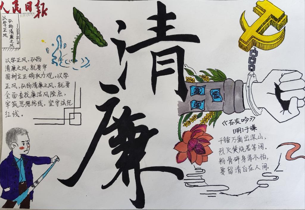 为深入学习贯彻党的二十大和习近平总书记系列重要讲话精神,根据《jdb电子游戏官方网站2024年度党风廉政建设警示教育活动实施方案》要求,jdb电子游戏官方网站学生第一党支部开展廉洁文化进校园系列活动暨勤廉主题书画作品展。营造风清气正、崇廉尚洁的校园廉政文化氛围,积极培育全院师生颂清廉、扬正气的精神风貌。