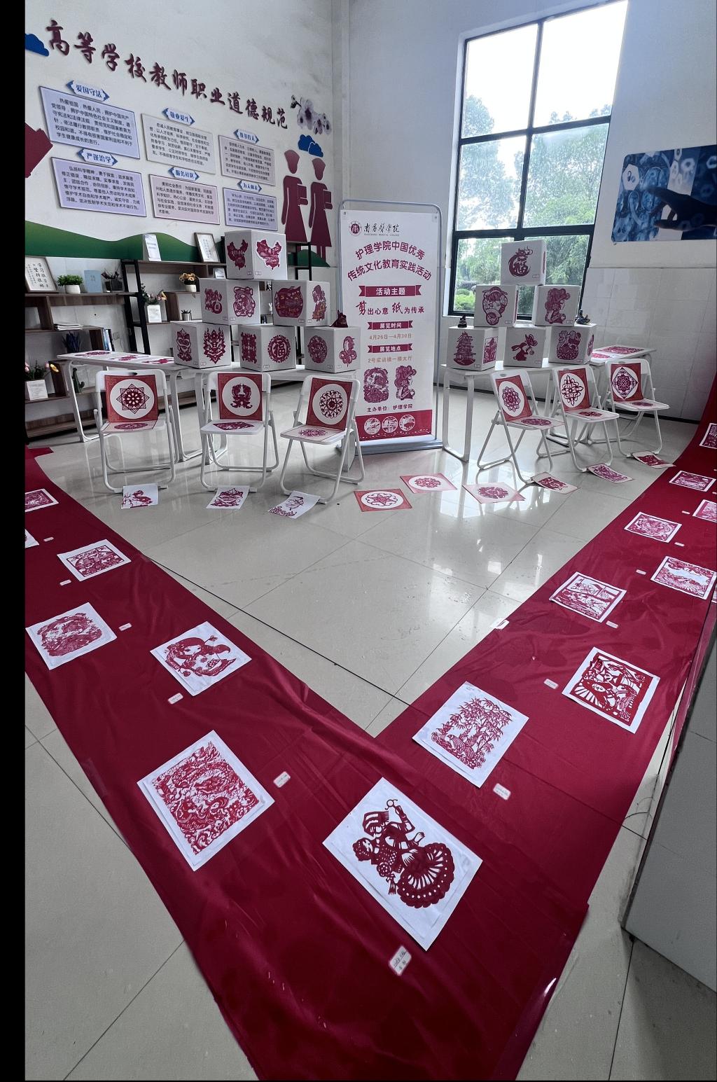 步入展厅,便如同走进了一个缤纷多彩的世界。一幅幅精美的剪纸作品错落陈列,这些作品不仅展现了创作者们精湛的手工艺技巧,更蕴含着丰富的文化内涵和深远的历史意义。 作为中国传统民间艺术之一,剪纸以其简洁明快、线条流畅的特点深受人们喜爱。而当代大学生则以他们特有的视角和创新精神,将这一古老技艺演绎出了新的风采。许多作品巧妙地融合了时代元素,如自身的职业、中国特色元素等,让人眼前一亮;有的作品则是对经典故事的新诠释,传统题材中注入了青春活力。