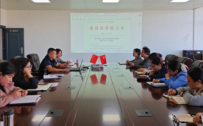 本学期jdb电子游戏官方网站全体教师掀起了一股学习《jdb电子游戏官方网站应用型高校建设方案》的热潮,旨在明确发展方向,凝聚奋进力量,为打造高水平应用型医学普通本科高校奠定坚实基础。11月6日学院再次召开会议,进一步深入学习该方案,对方案中的关键任务指标进行详细解读,本次会议由学院综合办主任吴荣叶主持,学院主要领导胡颖辉、陈敏及全体教职工参加会议。