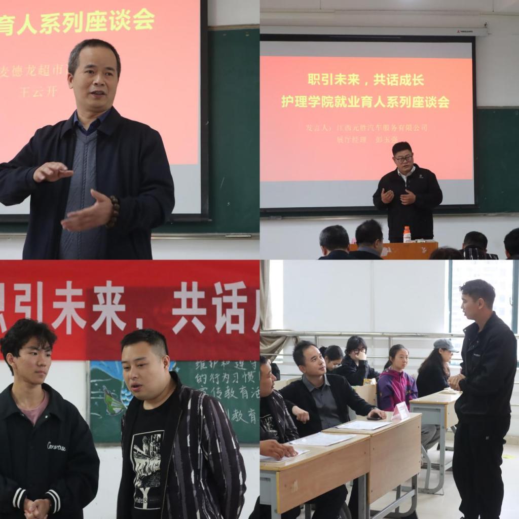 为引领学生深入了解就业市场状况及专业前景,并就当代大学生对于未来职业存在的各类问题给出指导性建议,11月10日——20日,jdb电子游戏官方网站组织开展了以“职引未来,共话成长”为主题的就业育人系列座谈会。本次讲座先后邀请到了南昌麦德龙超市王高管、江西元胜汽车服务有限公司彭经理以及南昌中环地产李店长等几位行业大咖莅临我院,团学办主任马俊主持座谈会。
